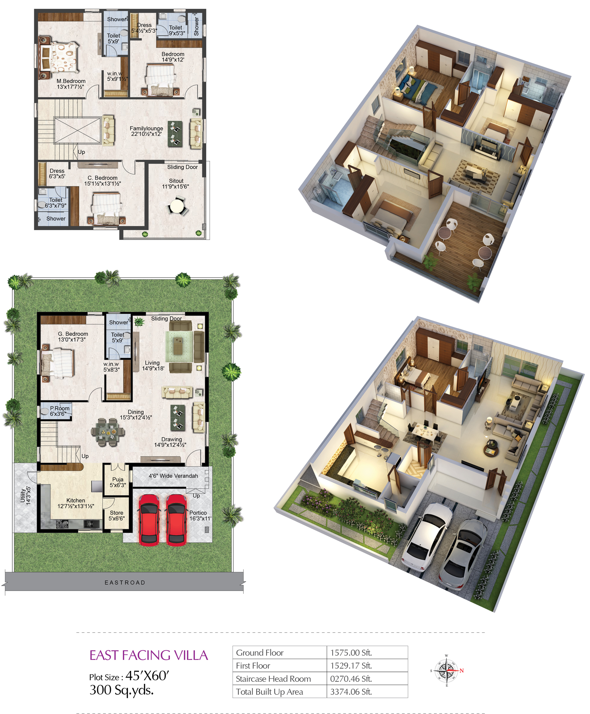 East Facing - 300 Sq.yds with 3374sft West facing - 300 Sq.yds with 3363sft East Facing - 220 Sq.yds with 2890sft East Facing - 200 Sq.yds with 2487sft West Facing - 200 Sq.yds with 2480sft