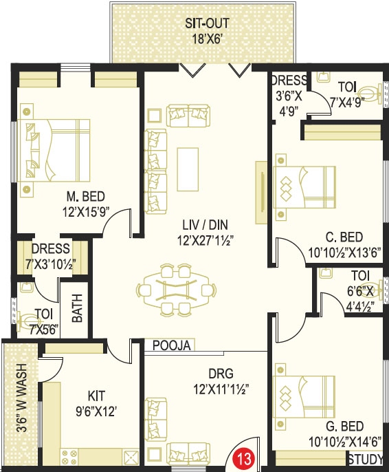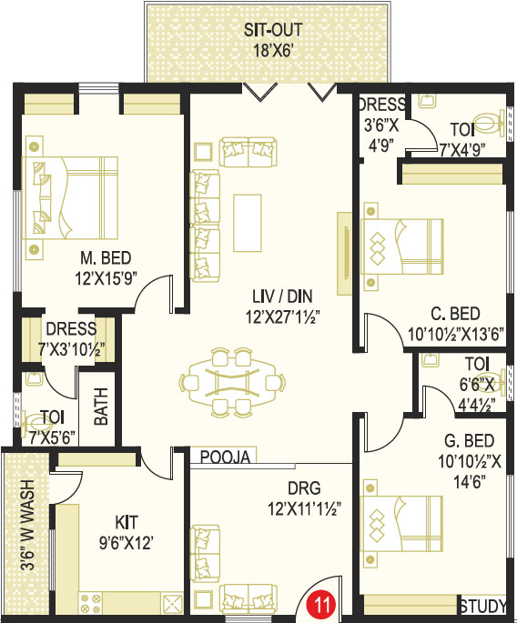 Area in Sft : 1829