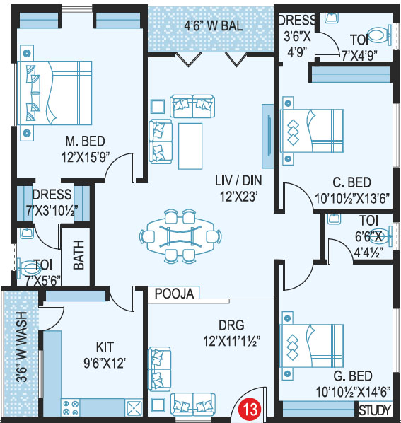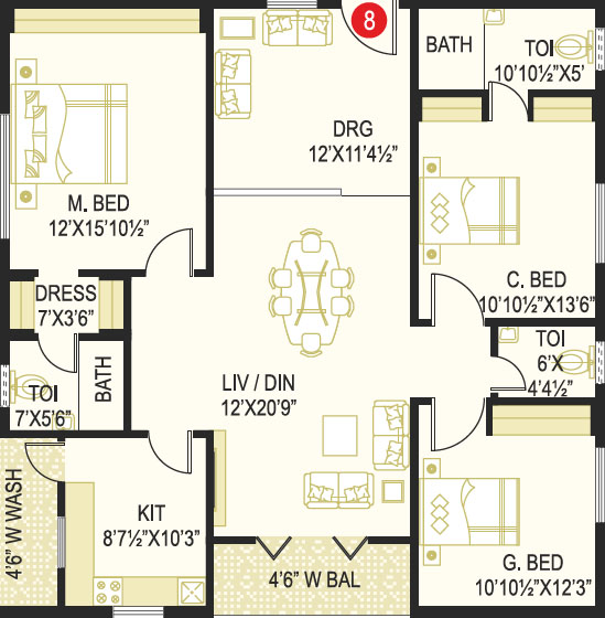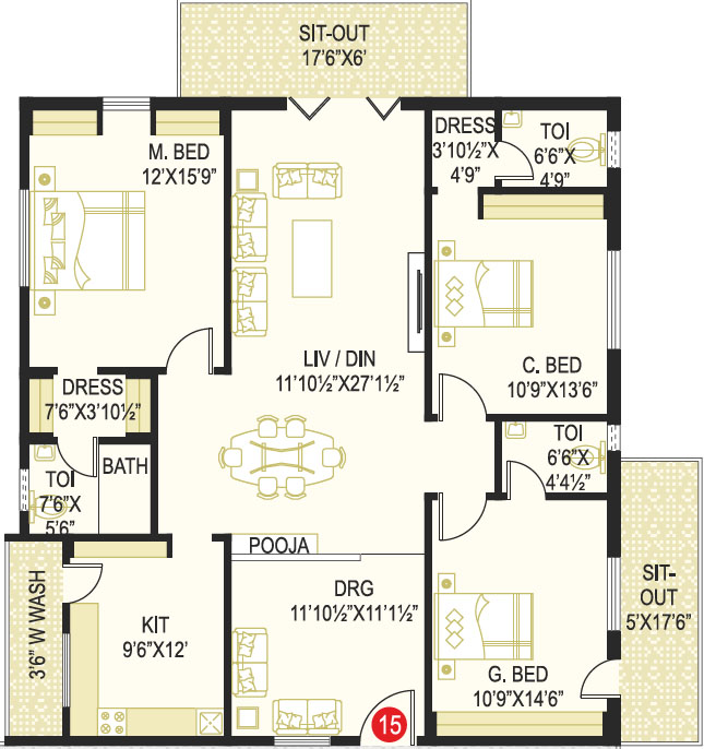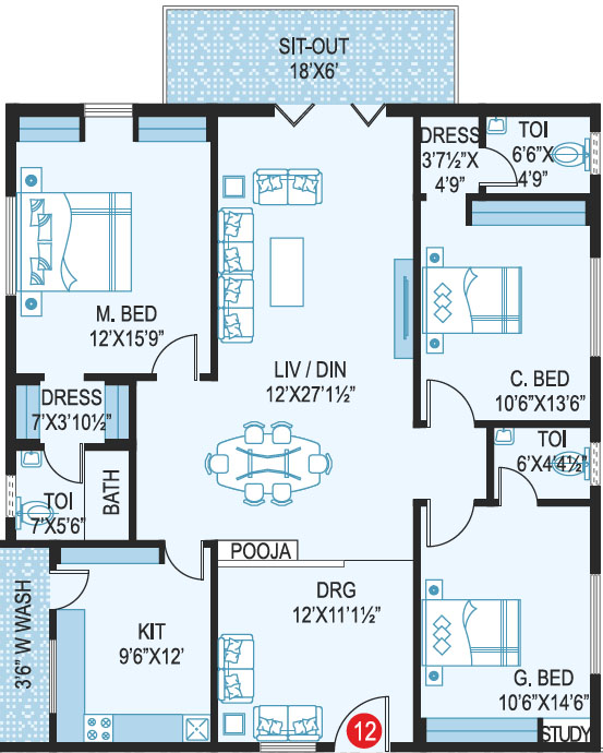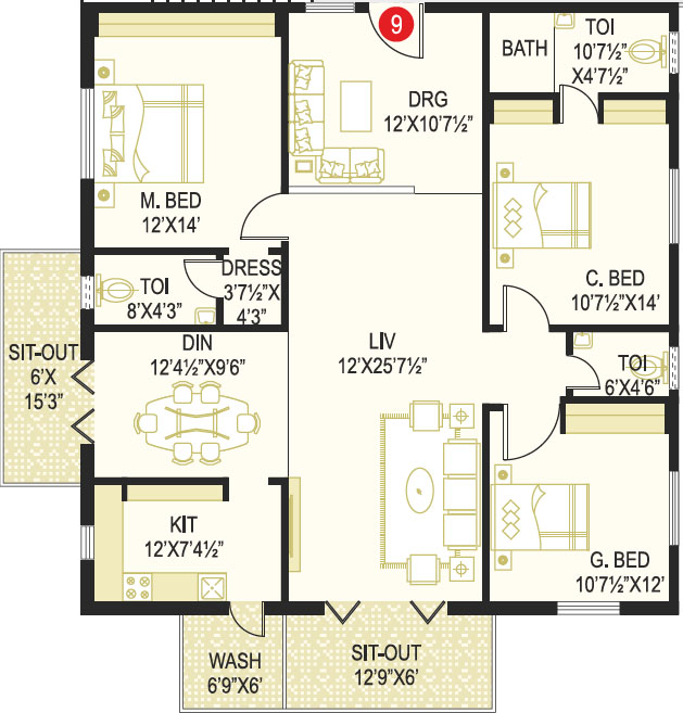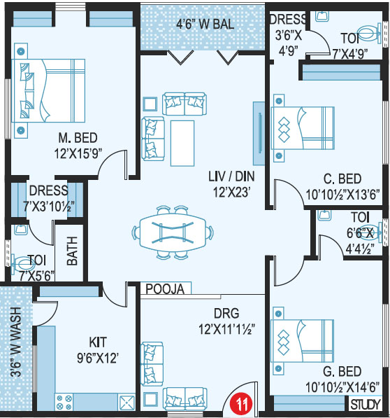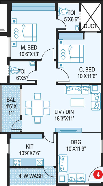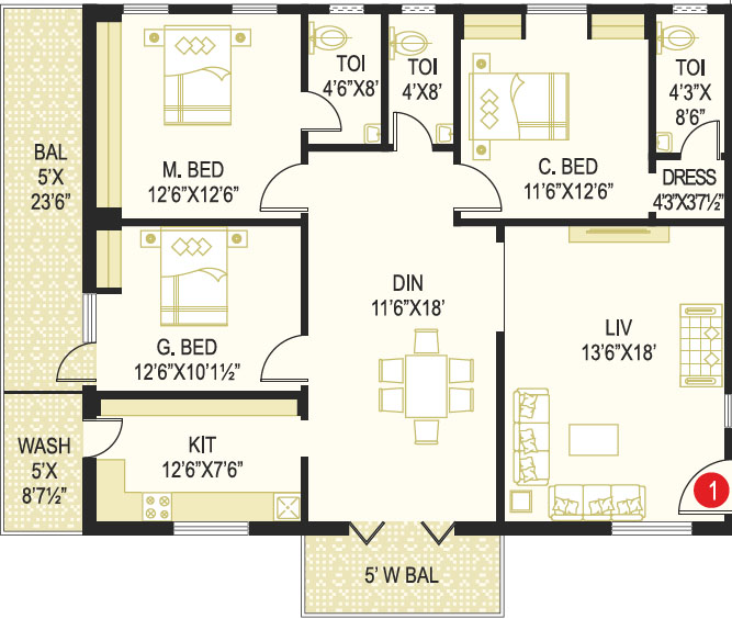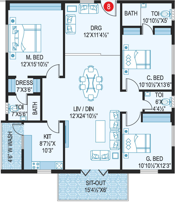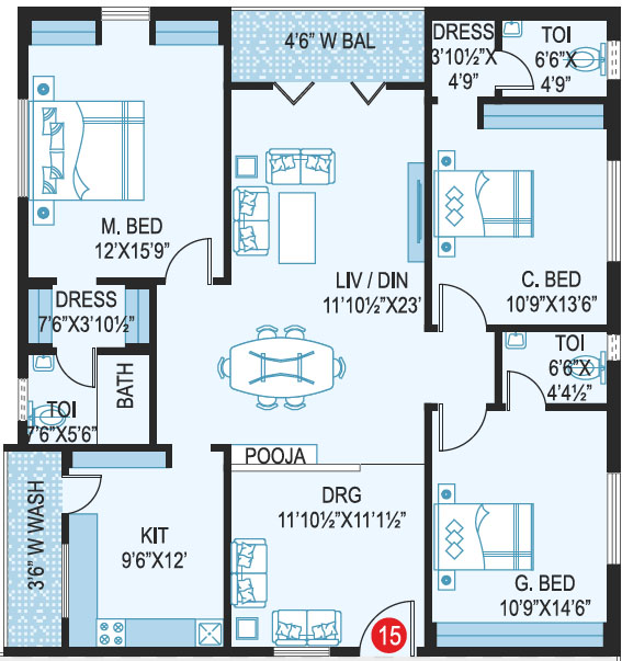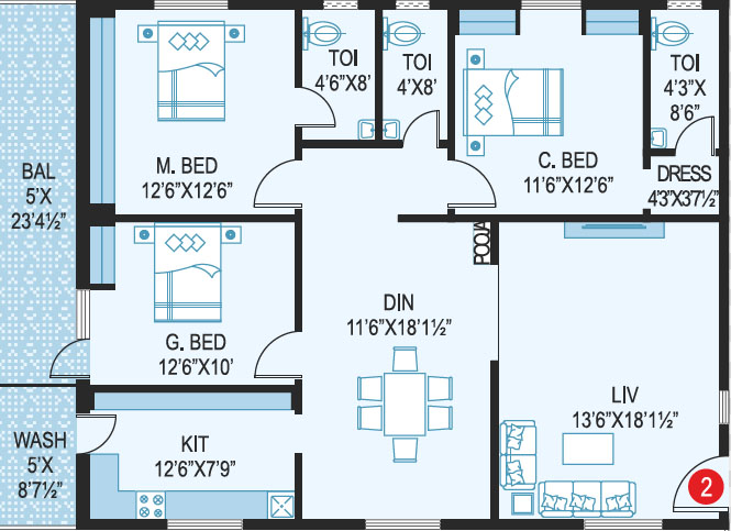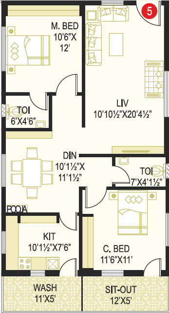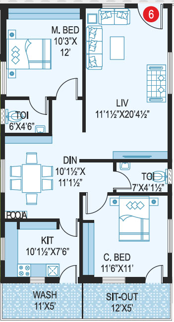 Area in Sft : 1222