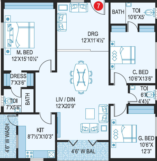 Typical Floor Plan (2 to 9 Floors)